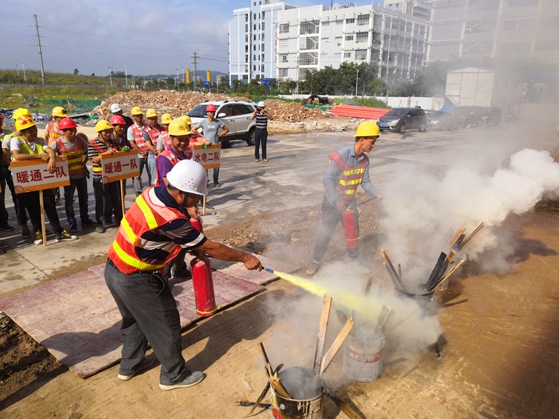 激烈的比賽結束后,消防應急演練活動(dòng)開(kāi)始了。當聽(tīng)到“起火啦”的大喊聲,全體人員井然有序的進(jìn)行了逃生演習。伴隨著(zhù)濃濃的煙霧,每個(gè)人捂著(zhù)“濕毛巾”,沿著(zhù)樓梯靠右一個(gè)接一個(gè)的快速撤離。當全體人員走出廠(chǎng)房大門(mén)時(shí),工作人員在空地上點(diǎn)燃了幾盆火焰。公司質(zhì)安部負責人講解了干粉滅火器的使用方法后,大家進(jìn)行了踴躍的嘗試。在此次消防演習中,本著(zhù)防患于未然的心態(tài),所有人員積極參與,專(zhuān)心聽(tīng)講,既鞏固了消防安全知識,也提高了項目安全生產(chǎn)工作水平。