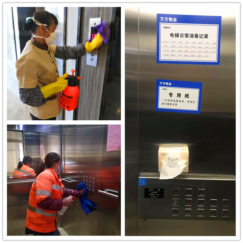 防疫物資到位后,萬(wàn)方公司于1月30日及時(shí)安排人員將物資下發(fā)到各服務(wù)項目,同時(shí)在接管的綠港·國際中心、麗匯工業(yè)園、創(chuàng )意產(chǎn)業(yè)園、金凱工業(yè)園、銀凱孵化園、宏象工業(yè)園、現代工業(yè)園、吳圩新港家園等10余個(gè)項目全面開(kāi)展疫情防控工作。由各項目主任帶頭領(lǐng)導,多措并舉防控疫情。首先,對公廁、下水道、單元樓道、垃圾桶、綠植等容易滋生病菌的場(chǎng)所進(jìn)行消毒,重點(diǎn)對人員接觸頻繁的電梯、公共通道的門(mén)把手、開(kāi)關(guān)、按鍵、健身器材等位置進(jìn)行每日1-2次的消毒滅菌工作。其次,嚴格落實(shí)園區進(jìn)出人員及車(chē)輛的管理和登記,共在各園區設置定點(diǎn)體溫檢測10處,嚴格開(kāi)展入園人員體溫檢測,并進(jìn)行體溫異常人員登記,除現場(chǎng)進(jìn)行體溫檢測外,還在萬(wàn)方公眾號小程序上推送各種防疫工作溫馨提示,提醒業(yè)主注意防疫措施并配合體溫監測。再次,設置廢棄口罩回收點(diǎn)30個(gè)(每個(gè)園區視項目情況配2-3個(gè)點(diǎn)),回收廢棄口罩,防止病毒逸散。最后,深入園區,做好業(yè)主和群眾的疫情防治宣傳,在各園區共懸掛疫情防控宣傳橫幅50條,將防護知識傳播到各家各戶(hù),降低恐慌,為共同保障園區環(huán)境奠定良好的群眾基礎。