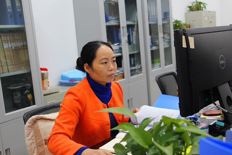 劉小英在認真地做成本測算工作