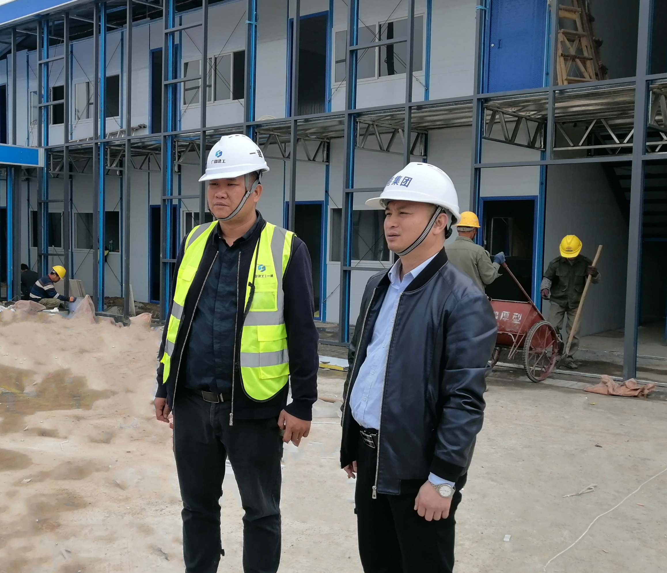 何小勇(右)到現場(chǎng)查看項目進(jìn)度